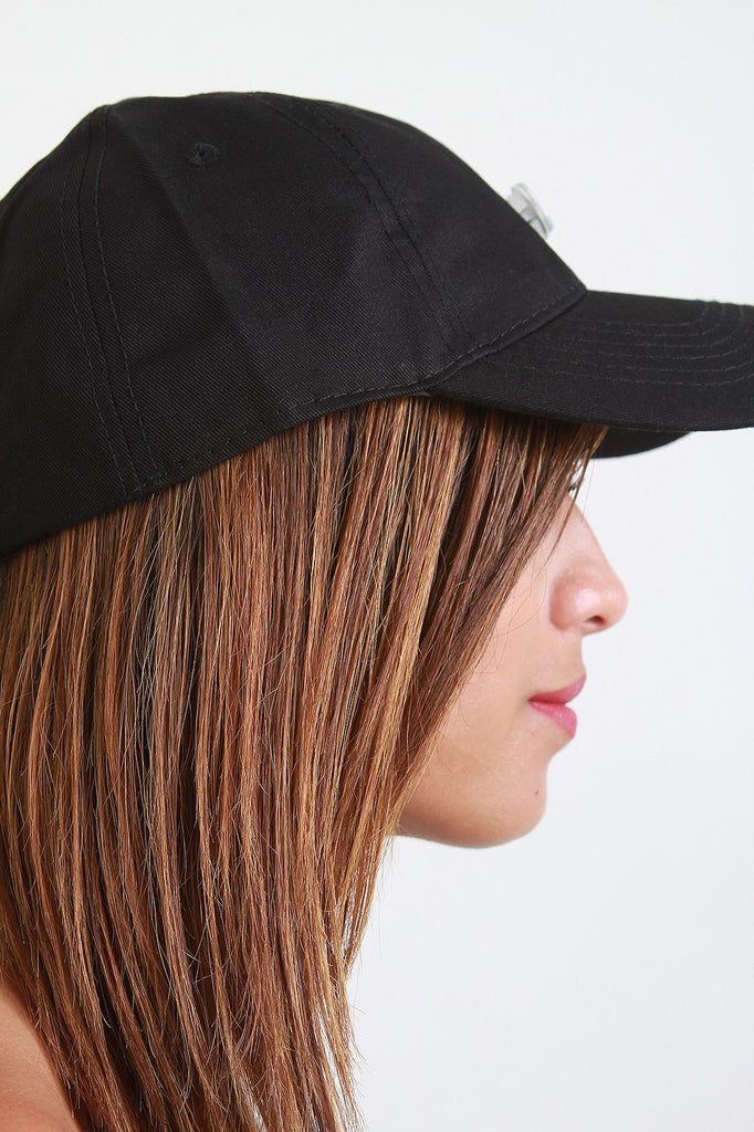 This cap has a classic baseball cap design, featuring 6-panels and curved brim. Adjustable strap at back. Fabric material. Forehead lining. Finished with a removal pin at front. 100% Cotton.