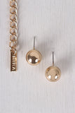 This collar necklace features a double snake chain, high polished metallic finish, wooden triangle block pendant, with an adjustable lobster claw closure. Includes matching earrings.