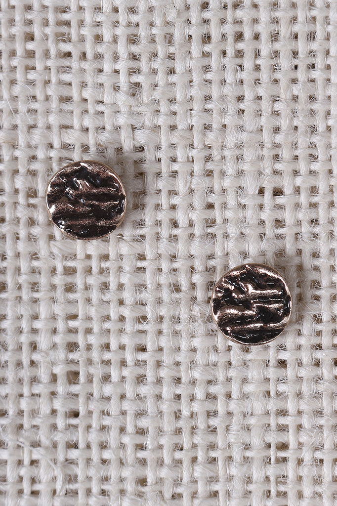 This earring set features three pairs of earrings, two round pairs with different designs etched on them and one pair of elephant earrings, with post backs.