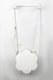 This lovely bag features a daisy-shaped silhouette, stitching detail on a long edge of face, top zip closure, and removable, adjustable vegan leather shoulder strap (23.5" drop).