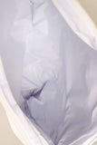 This cutesy mini-bag features a soft furry material, attached wrist strap, polka dot whale and "swim suit" stitching detail at front, and anchor zipper closure. Finished with a waterproof lining.