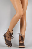 Bamboo Contrast Lace Up Round Toe Duck Ankle Boots