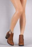 These stylish ankle boots feature a vegan leather upper with an elastic gore side panels, round toe silhouette, textured sole, and chunky heel. Finished with cushioned insole and easy pull-on construction.