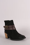 These ankle boots are Western style silhouette, featuring an oil finish design. It is slouchy shaft with straps wrapping around, buckle is decor. Finished on a chunky stacked heel.