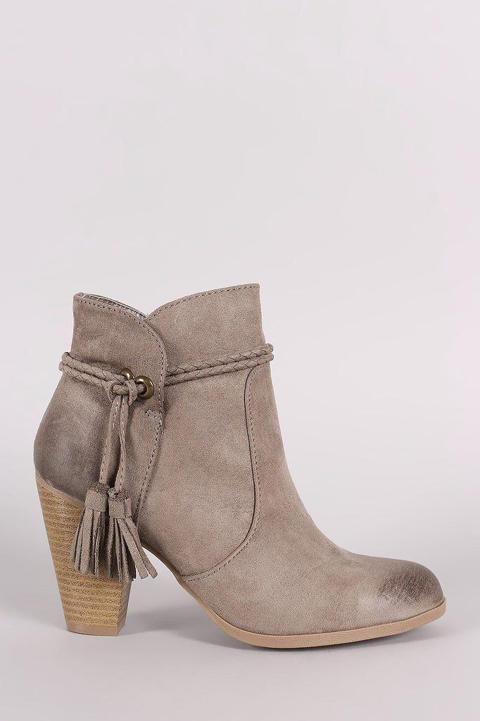 These chic ankle boots feature a round toe silhouette, woven ankle straps with tassel detail, and chunky stacked heel. Finished with a cushioned insole, smooth lining, and side zipper closure for easy on/off.