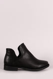 These booties feature a vegan leather upper with open side slit , almond toe silhouette, and low stacked heel. Finished with cushioned insole, smooth lining, and pull-on construction.