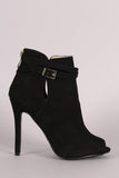 Qupid Suede Strappy Buckled Peep Toe Stiletto Booties
