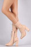 These edgy chic ankle boots feature an almond closed toe silhouette with fully lace-up design and chunky wrapped heel. Finished with a cushioned insole, smooth lining, and side zipper closure for easy on/off.