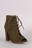 These fashion-forward booties feature a peep toe silhouette, lace-up front, and chunky stacked heel. Finished with a cushioned insole, smooth lining, and side zipper closure for easy on/off.