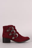 • Qupid Triple Buckle Cowgirl Ankle Boots