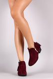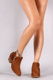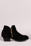 These stylish booties feature a vegan suede upper, stitching detail on vamp, round toe silhouette, and back fringe design. Finished with a block heel, side zip-up closure, lightly cushioned insole, and plaid lining.