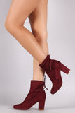 These ankle boots feature a stretchy fitted shaft with an adjustable drawstring. Round toe. Finished on a chunky heel.