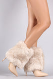 These cozy pointy toe silhouette, fold down faux fur shaft, and stiletto heel. Finished with a cushioned insole, smooth lining, and easy pull-on construction.