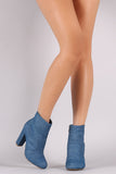 These chunky heel booties features an almond toe design, stitching accents, and side zip closure. Finished with a cushioned insole and soft faux fur lining.