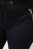 These plus size jogger pants features soft French terrycloth fabrication, wide elasticized waist with self-tie drawstring, side zipper d�cor, and jogger hem. Accessories sold separately. 70% Cotton, 25% Polyester, 5% Spandex.