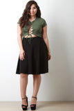 This skater cut skirt features a texture knit fabrication, wide high waisted cinched seam, and a zipper fastener at back. Accessories sold separately. Made in U.S.A. 96% Polyester, 4% Spandex.
