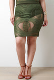 This plus size mini skirt features oval pattern semi-sheer lace fabrication, wide elasticized waist, rear exposed zipper fastener, and brief underlay. Accessories sold separately. Made in U.S.A. 97% Nylon, 3% Spandex.