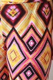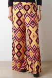 These plus size pants feature smooth stretch fabric, diamond pattern print, and wide legs. Accessories sold separately. Made in USA. 96% Polyester, 4% Spandex.
