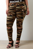 These plus size leggings feature a jersey knit fabrication with camo print, slit knee cutout, elasticized waist, and taper cut fit. Accessories sold separately. Made in U.S.A. 95% Cotton, 5% Spandex.