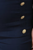 These high waisted pants feature a slightly stretchy knit fabrication, 6-buttons accent at front, slightly flare legs construction, and concealed side zip closure. Accessories sold separately. 80% Cotton, 30% Polyester, 5% Spandex.