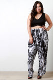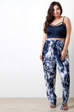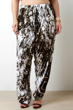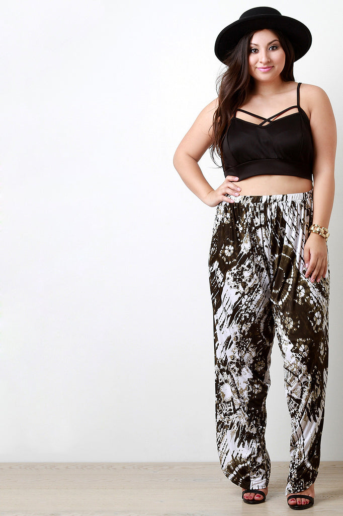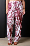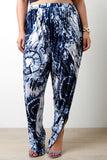 These trendy pants feature a tie dye-printed soft stretchy fabric, deep side slits, drop crotch construction, and relax fit. Finished with an elasticized waist band. Accessories sold separately. Made in U.S.A. 95% Polyester, 5% Spandex.