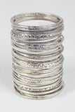 This bangle set features 45 individual bracelets of various widths and textures.