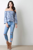 This pretty blouse top features a tribal print fabrication, elasticized off-the-shoulder neckline, and bell sleeves construction. Accessories sold separately. Made in U.S.A. 92% Polyester, 8% Spandex.
