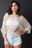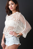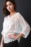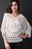 This lovely relaxed fit crochet knit fabrication with rosette design at the front and back. Finished with v neckline, dolman sleeves, and straight hemline. Accessories sold separately. Made in U.S.A. 100% Cotton.