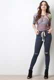 This bodysuit feature a colorful tribal print throughout, semi-sheer fabrication, and round neckline with a single button hook at nape. Finished with a quarter sleeve construction and double snap button closure at crotch. Accessories sold separately. Made in U.S.A. 95% Polyester, 5% Spandex.