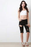 These boyfriend shorts features distress front, fringe knee length hemline, class 5-pockets, belt loops, zipper fly, and a single button closure. Accessories sold separately. 100% Cotton.