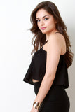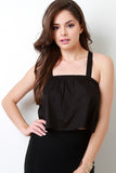 This casual top features a crisp knit fabrication, elasticized cinched square neckline, flat shoulder straps to a crisscross back, and cropped hemline. Accessories sold separately. Made in U.S.A. 100% Cotton.