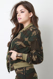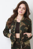 This sporty jacket features a bomber silhouette, knit fabrication, contrast rib knit trim, metal zipper closure, welt front pockets, with black double stripe detail on each sleeve. Accessories sold separately. 95% Cotton, 5% Spandex.