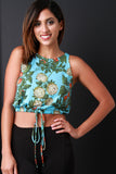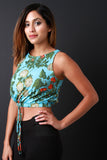 This cutesy top features a soft lightweight knit fabric, tomato plant print design, round neckline, sleeveless fit, and elasticized cropped hemline with self-tie drawstring. Accessories sold separately. 95% Polyester, 5% Spandex.