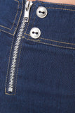 These jeans feature denim, sailor style button accents, two functional zippers, high waist, and wide legs. Accessories sold separately. 65% Rayon, 32% Polyester, 3% Spandex.