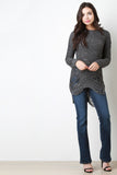 This sweater top features chunky loose knit, shredded accents, round neckline, long sleeves, and high-low hem. Accessories sold separately. 55% Cotton, 45% Acrylic.