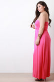 This dress features a jersey knit fabrication, curve hugging fit, strapless and ruched elasctized tube neckline. Finished with a cinched waist. Accessories sold separately. Made in U.S.A. 95% Rayon, 5% Spandex.