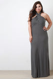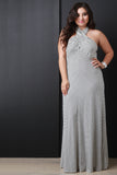 This plus size dress features striped jersey knit, criss-cross neck, open back, and maxi length. Finished with partial lining. Accessories sold separately. S: 68% Rayon, 29% Polyester, 3% Spandex. L: 100% Polyester.