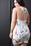 This cute plus size dress features knit fabrication, watercolor style floral print, rounded neckline, cage like racerback design, curve hugging bodycon fit and a mini length hemline. Accessories sold separately. Made in U.S.A. Shell: 95% Polyester, 5% Spandex. Contrast: 100% Polyester.