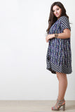 This plus size dress features mixed pattern, v-neckline, fringe tassel strings, short sleeve, and midi length. Accessories sold separately. 100% Rayon.