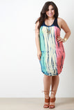 This plus size tank dress features a soft jersey knit with tie dye coloring, scoop neck, sleeveless design, and curved hem. Accessories sold separately. Made in U.S.A. 95% Rayon, 5% Spandex.
