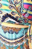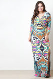 This plus size maxi dress features vibrant paisley pattern print, surplice v-neckline, quarter-length sleeves, left vent slit, and a self-tie waist. Accessories sold separately. Made in U.S.A. 95% Polyester, 5% Spandex.