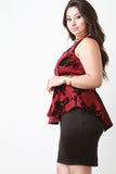 This plus size sleeveless mini dress features a sweetheart neckline with v-boning, floral applique pattern top with peplum detail at waist, and contrasting mini skirt. Partially lined. Accessories sold separately. 96% Polyester, 4% Spandex.