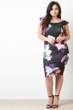 This plus size dress features a boat neckline, short flutter sleeves, stretchy sculpture fit, princess and cinched waist seams, finished with floral pattern print. Accessories sold separately. Made in U.S.A. 96% Polyester, 4% Spandex.