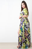This eye-catching plus size dress features a stretchy knit fabric, floral paradise print design, boat neckline, and short sleeves fit. Finished with a maxi-length hemline, two front high vent slits, and boxer shorts underlay. Accessories sold separately. Made in U.S.A. 95% Polyester, 5% Spandex.