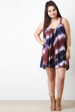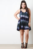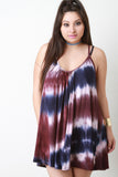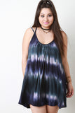 This plus size mini dress features soft jersey knit, tie dye, scoop neckline, shoulder straps that criss-cross at back, and relaxed fit. Accessories sold separately. Made in USA. 96% Rayon, 4% Spandex.