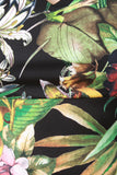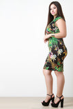 This plus size dress features a tropical in bloom print design, wide shoudler construction, sleeveless fit, and v-neckline. Finished with a midi-length hemline, center back slit, and rear zipper fastener. Accessories sold separately. Made in U.S.A. 96% Polyester, 4% Spandex.