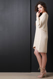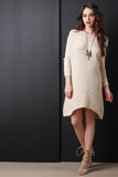 This warm sweater dress features a horizontal ribbed knit fabrication, scooped neckline, dolman sleeves design, banded cuffs, and high-low hemline. Accessories sold separately. 00% Cotton.
