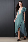 This simple dress features textured fabrication, a wrap inspired design with a surplice neckline, self-tie sash at waist, overlapping front, and short flared sleeves. Accessories sold separately. Self: 100% Polyester. Lining: 100% Polyester