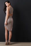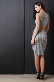 This sleeveless dress features a round neckline, wide vertical ribbed knit fabrication, rounded hemline, and a keyhole cutout at back. Accessories sold separately. Made in U.S.A. 74% Cotton, 26% Polyester.