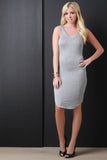 This soft knit midi dress features a scoop neckline, sleeveless design, hoodie back, and rounded hemline. Accessories sold separately. Made in U.S.A. 96% Rayon, 4% Spandex.